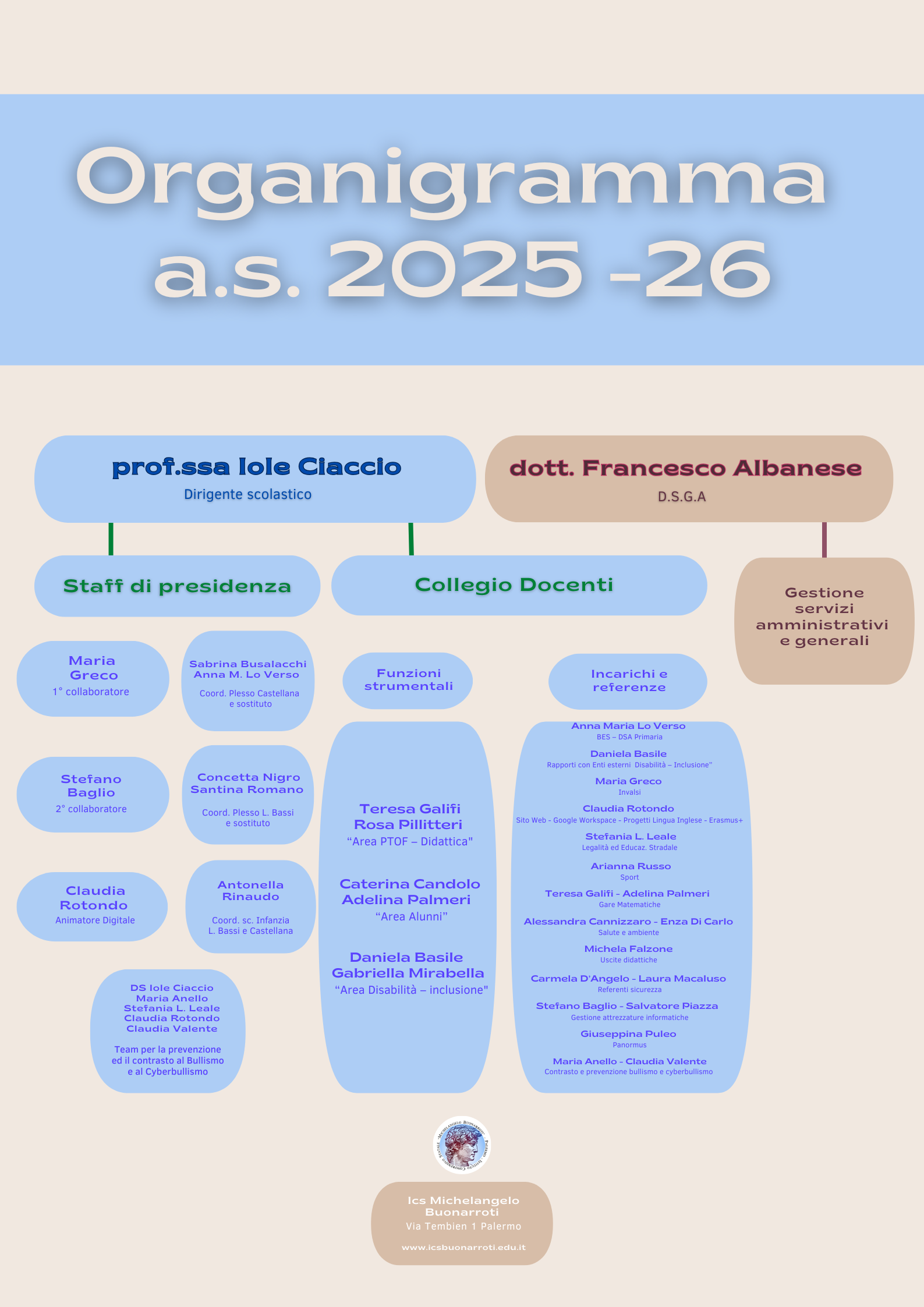 Stampa / Condividi Stampa Invia Condividi Facebook Twitter Linkedin Cosa faL’organigramma è la rappresentazione grafica della struttura organizzativaOrganigramma 2025-26Organizzazione e contattiContattiTelefono: 091221001Email: PAIC87100X@istruzione.itPosta Elettronica Certificata (PEC): PAIC87100X@pec.istruzione.it